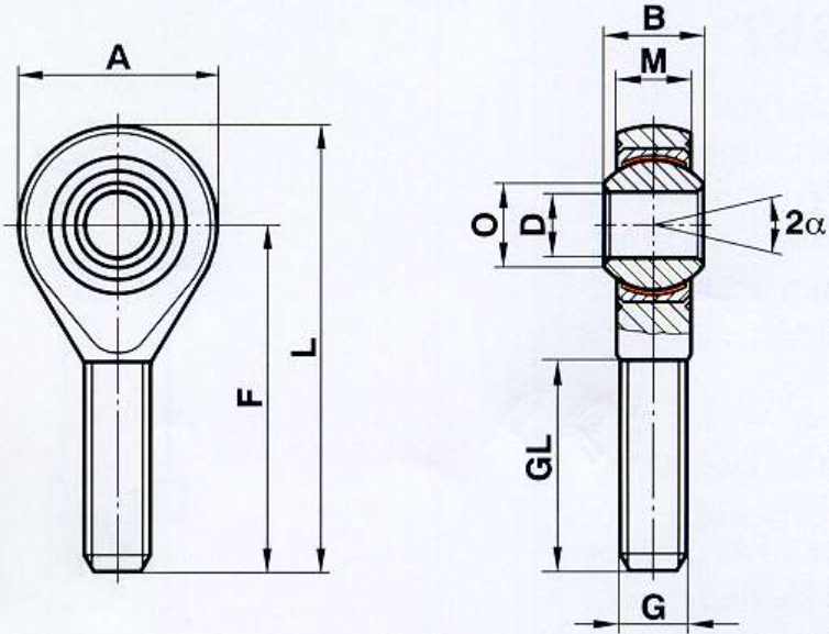 Size (D H7)BMAFLOGGLStatic load C0 kNDynamic load C kNLimiting speed rev/minPivoting angle α (o)Weight (g)
