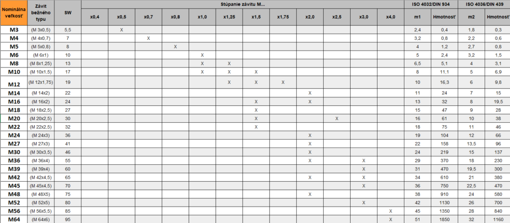 Poistné matice DIN 934 / ISO 4032DIN 439/936 Materiál: pozinkovaná oceľ, trieda 04 a vyššie, alternatívne v V2A (1.4301/1.4303) X – dostupné skladom